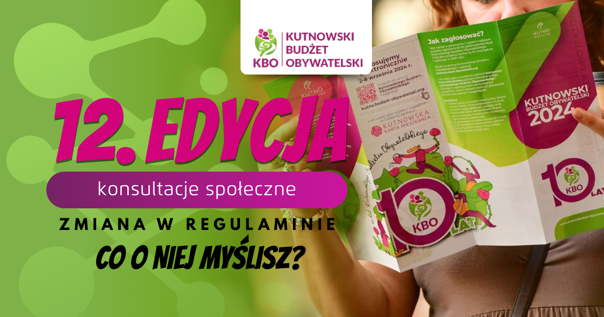 Już niebawem wystartuje kolejna, 12. już edycja KBO! W ramach 12. edycji chcemy wprowadzić drobne doprecyzowanie Regulaminu: projekty będą mogły być realizowane tylko na terenach należących do Miasta Kutno lub miejskich jednostek.